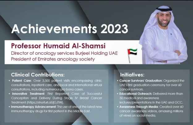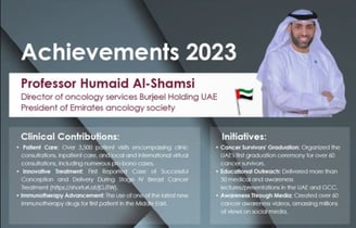 Prof. Al Shamsi strongly believes in and works to increase cancer awareness and early detection and reduce the stigma about cancer.
