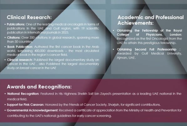 He aims to support and enhance the quality of cancer care by providing the most comprehensive cancer treatment for the patients in the UAE and the region.