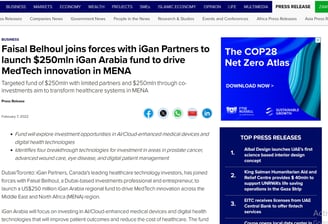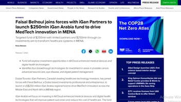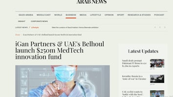 iGan Partners, Canada's leading healthcare technology investors, has joined forces with Faisal Belhoul, a Dubai-based investments professional and entrepreneur, to launch a US$250 million iGan Arabia regional fund to drive MedTech innovation across the Middle East and North Africa (MENA) region.