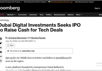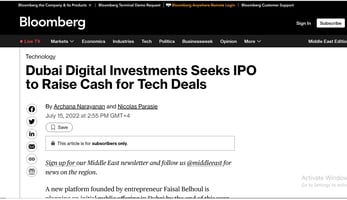 DUBAI DIGITAL INVESTMENTS SEEKS IPO TO RAISE CASH FOR TECH DEALS